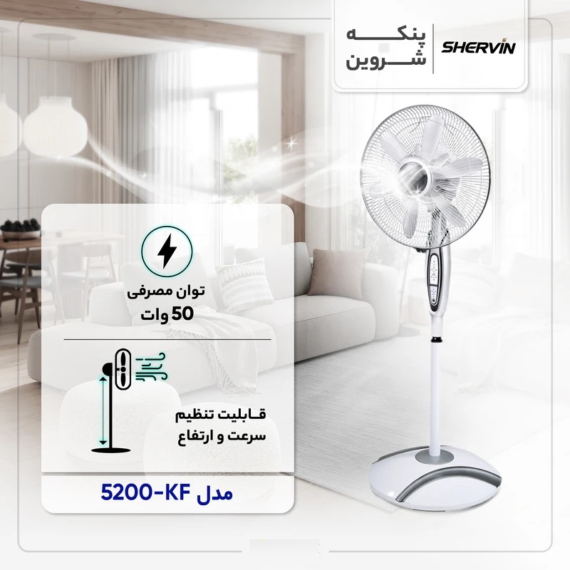 - تنظیم گردش (چرخش): دارای بازوی گردان برای تهویه هوا در تمام جهات و قابلیت چرخش اتوماتیک (Oscillation) برای پوشش فضای وسیعتر.