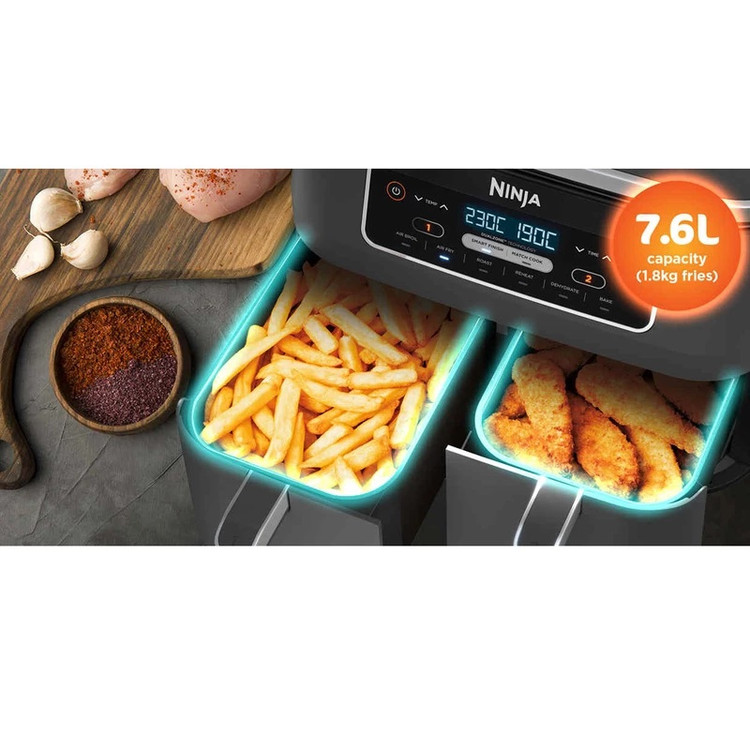 سرخ کن نینجا مدل دوقلو دارای توان مصرفی 1670 وات بوده، و قابلیت تنظیم دما از 40 تا 240 درجه سانتی گراد را دارد. سرخ کن نینجا 300 دارای دو عدد مخزن و سبد پخت مجزا از یکدیگر می باشد، که هر یک از این سبد ها 3.8 لیتر و به طور کلی دارای 8 لیتر گنجایش می باشد. همچنین این دستگاه نیازی به گرم شدن ندارد و غذای شما را کاملاً رژیمی و سالم آماده می کند.