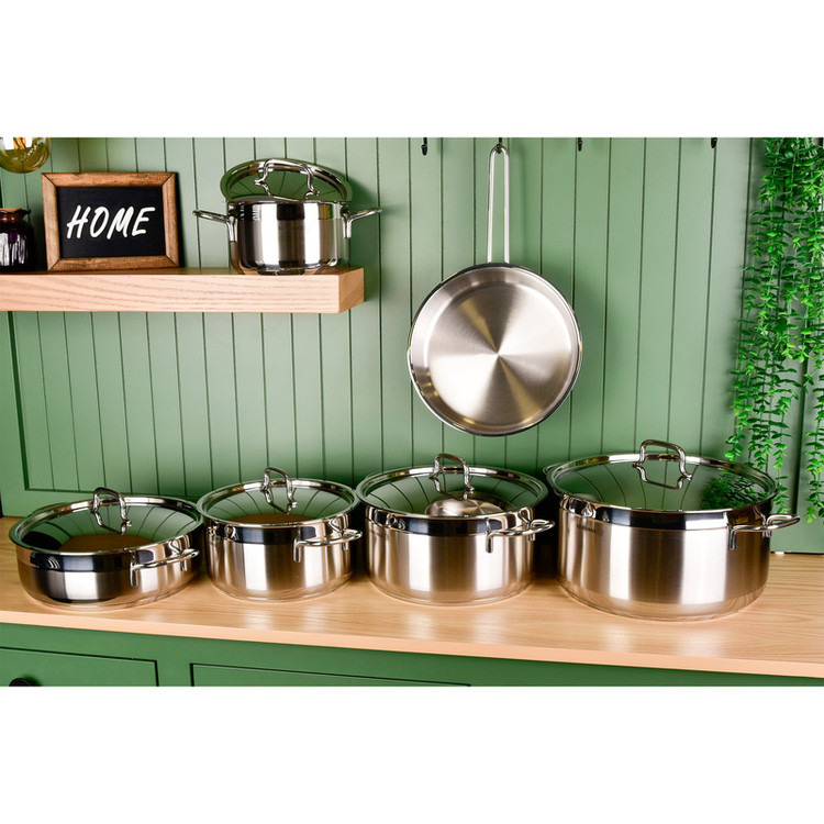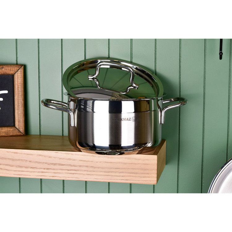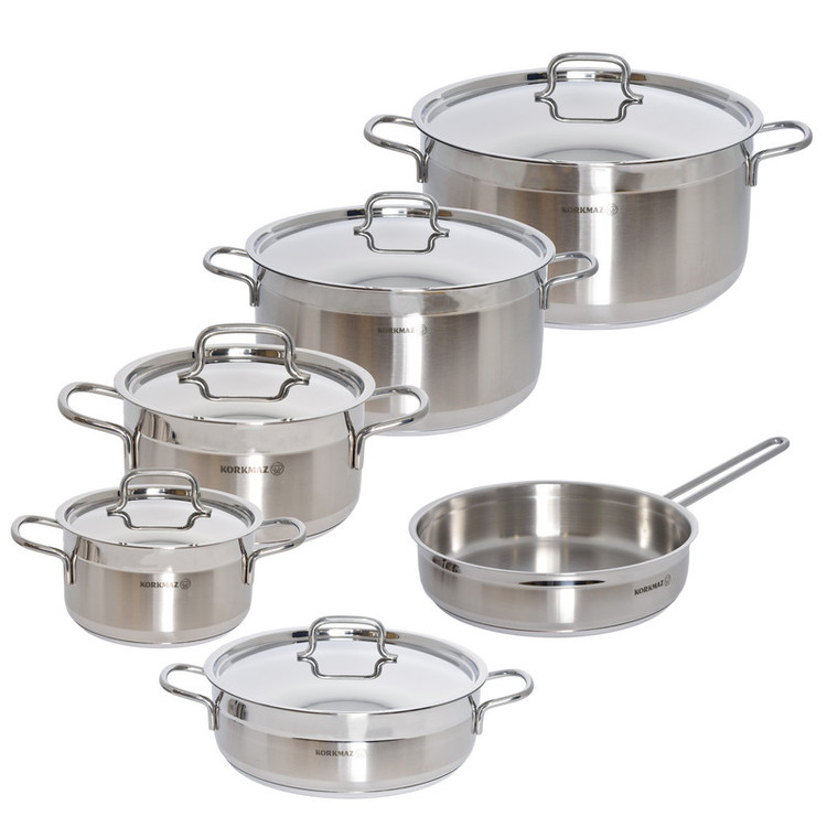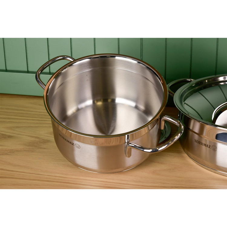 سرویس قابلمه یک وسیله اساسی و پرمصرف و از ضروریات هر خانه است و هر خانم خانهداری به دنبال این است که زیباترین، بادوامترین و سالمترین آن را انتخاب و خریداری نماید. در حالت ایدهآل، ظروف آشپزی شما باید از مادهای بیاثر ساخته شده باشد. پس پیشنهاد ما به شما سرویس قابلمه 11 پارچه کرکماز مدل Korkmaz Alfa XL A1641 است.استیل به کار رفته در سرویسهای قابلمه کرکماز بسیار با کیفیت و از مواد اولیه بهداشتی تهیه شده است. این ماده یکی از بهداشتی ترین و سالم ترین مواد برای ظروف پخت و پز بعد از فولاد ، پرسلان و شیشه است. استیلی که می توانید با خیال آسوده مواد غذایی را در داخل آن قرار داد.دستگیرههای این سرویس قابلمه از جنس استیل ضد زنگ و نسوز میباشند. طراحی ارگونومیک دستگیرهها و اتصال محکم آنها به بدنه موجب استفاده راحت و ایمن از آنها شده است.کف قابلمه استیل 1641، دارای کف سه لایه جهت انتقال یکسان حرارت ، قابل شستشو در ماشین ظرف شویی و قابل استفاده بر روی انواع اجاق گاز القایی، شیشه ای، برقی، سرامیکی و به خصوص گازی می باشند.