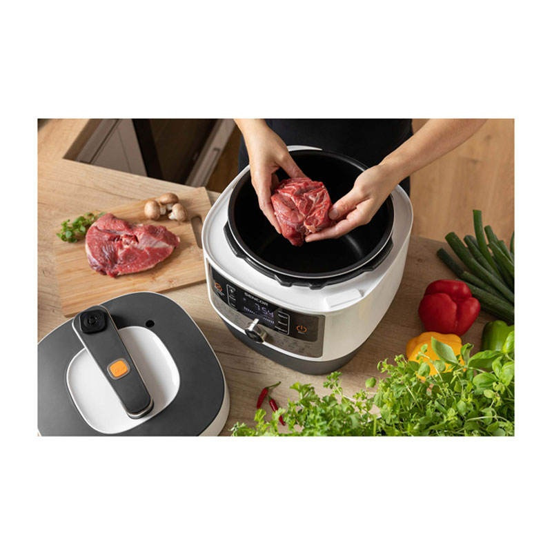 زودپز 6 لیتری میدیا مدل MY-SS6062 دستگاهی شیک و منحصر به فرد است و یک راه حل مناسب برای سبک زندگی پر مشغله امروزی می باشد که علاوه بر پخت و پز بسیار سریع تا 70٪ در وقت و انرژی صرفه جویی نیز می کند. بطوریکه به لطف آن می توان تمامی وعده های غذایی را تنها با لمس یک دکمه به صورت کاملا سالم و مغذی آماده کرد. نمای بیرونی این زودپز چند کاره، دارای ظاهری زیبا و مدرن است و ظرف داخلی با ظرفیت 6 لیتر از جنس آلومینیوم همراه با پوشش نچسب ساخته شده و به سهولت قابل تمیز کردن، می باشد. منوی چند منظوره و از پیش تعیین شده این امکان را می دهد تا بتوان طیف گسترده ای از وعده های غذایی از جمله دسر، گوشت و غلات را به راحتی تهیه نمود و صفحه نمایش بزرگ LED، استفاده از این مدل را آسانتر ساخته است. مایدیا برای این دستگاه بی نظیر، 14 منوی پخت خودکار با 7 درجه فشار قابل تنظیم در نظر گرفته که موجب افزایش راندمان و کارایی آن گردیده. ناگفته نماند، می توان پخت غذاها را به 6 حالت دستی، اتوماتیک، متناسب با نوع مواد و یا حالت صرفه جویی در مصرف حرارت انجام داد. مولتی کوکر Midea MY-SS6062 دارای تایمری است که تأخیر در پخت و پز را تا 24 ساعت امکان پذیر می سازد. همچنین 9 مکانیسم ایمنی مختلف، امنیت استفاده از این محصول را فوق العاده افزایش می دهد.