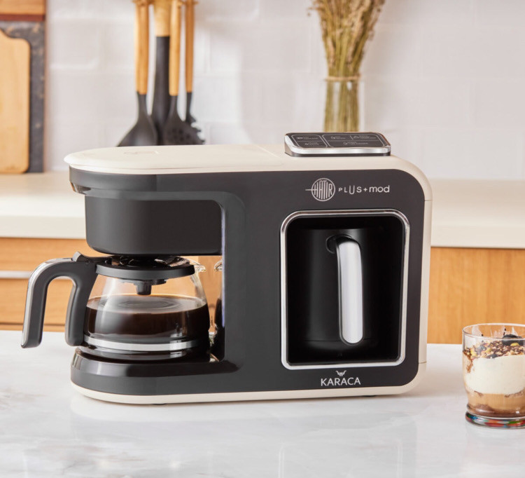 قهوهساز و چایساز ۵ کاره کاراجا مدل Hatır Plus Mod — دمآوری همزمان قهوه ترک، فیلتر، شیر داغ و چای